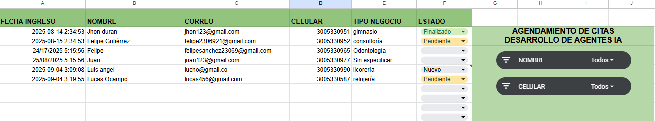 Centraliza los clientes que llegan por tu agente de IA, gestiona contactos y seguimientos sin esfuerzo, todo en una sola hoja inteligente